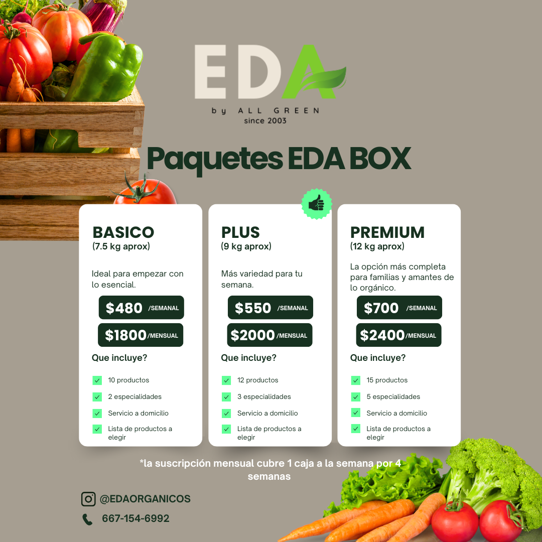 Selecciona el paquete que mejor se adapte a ti: Básico, Plus o Premium, semanal o mensual (4 entregas con 10% de descuento).